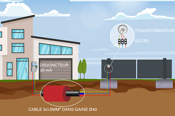 Dans ce cas de figure, il faut tirer une ligne électrique depuis votre tableau électrique jusqu’au portail battant ou coulissant. Cela est nécessaire pour alimenter votre portail en électricité.