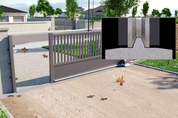 Un portail coulissant classique possède un mécanisme d’ouverture composés de roues qui coulissent sur un rail fixé au sol. Le portail repose donc sur ce rail et coulisse dessus. La pose d’un portail classique, demande une lourde préparation en maçonnerie qui comprend la construction d’une longrine en béton creusée sur la longueur du portail afin qu’il puisse s’ouvrir correctement. Un rail est fixé sur cette longrine afin de faire coulisser le portail à l’ouverture.