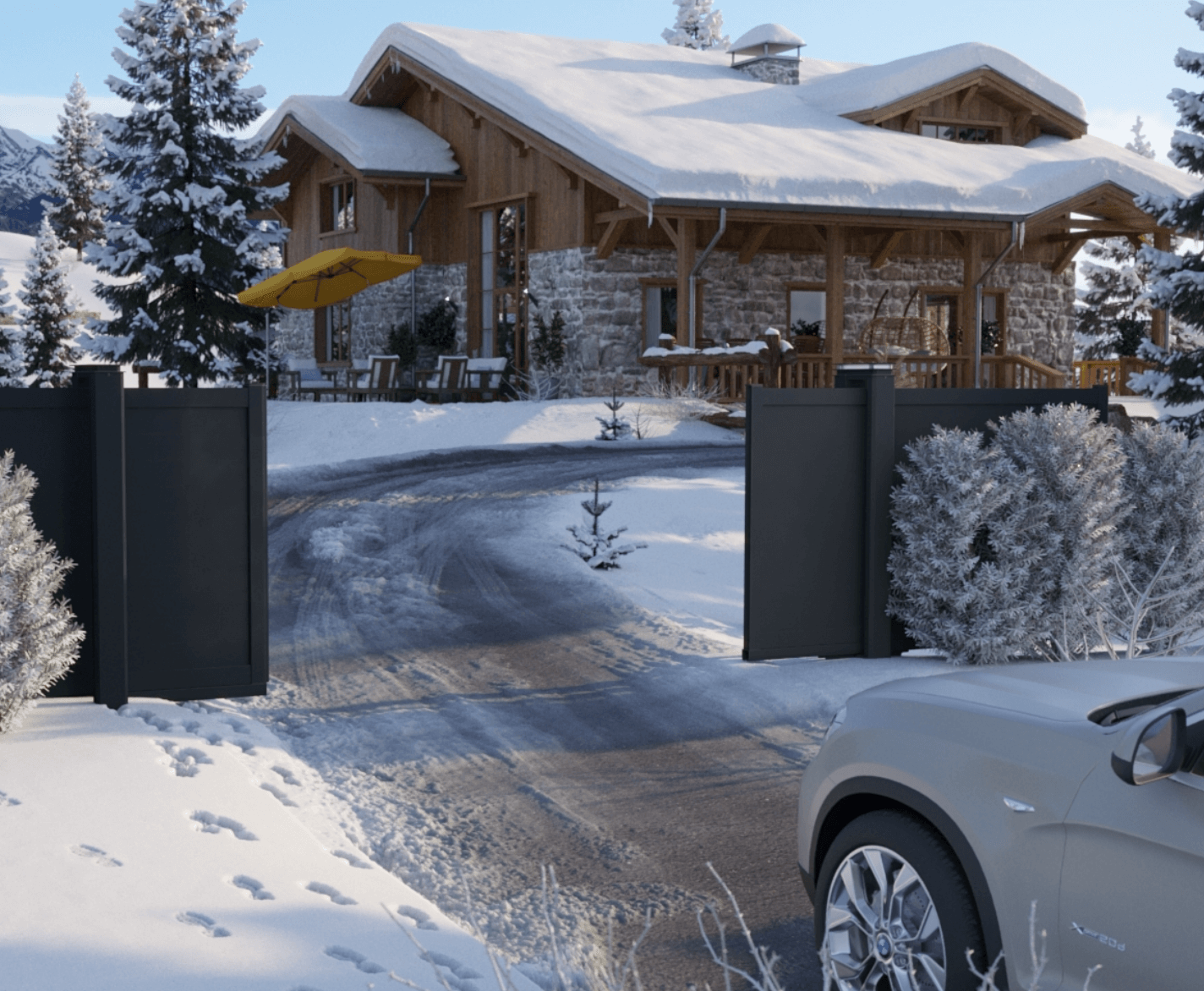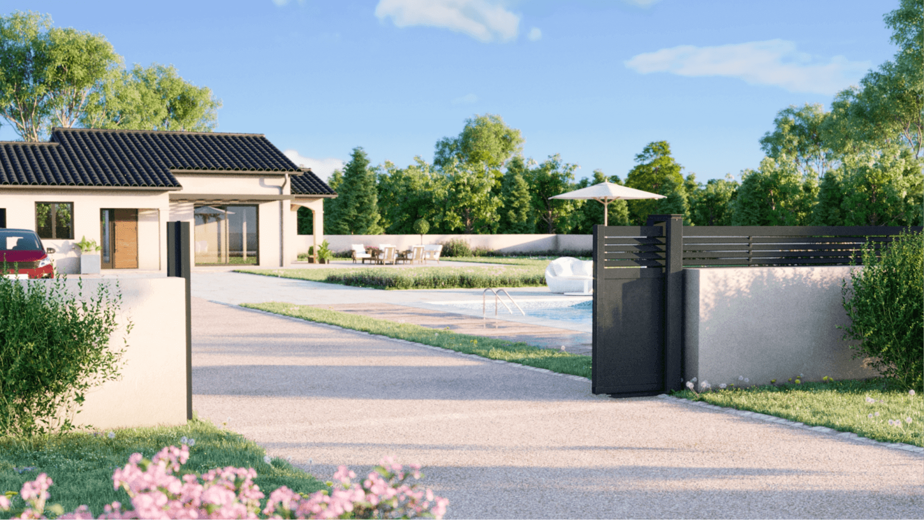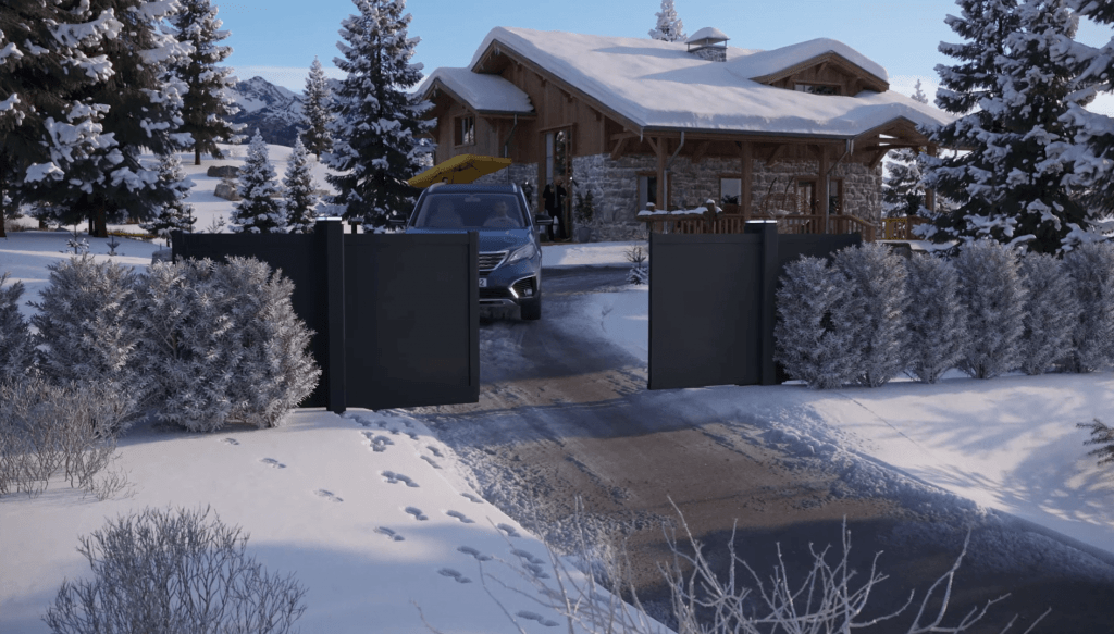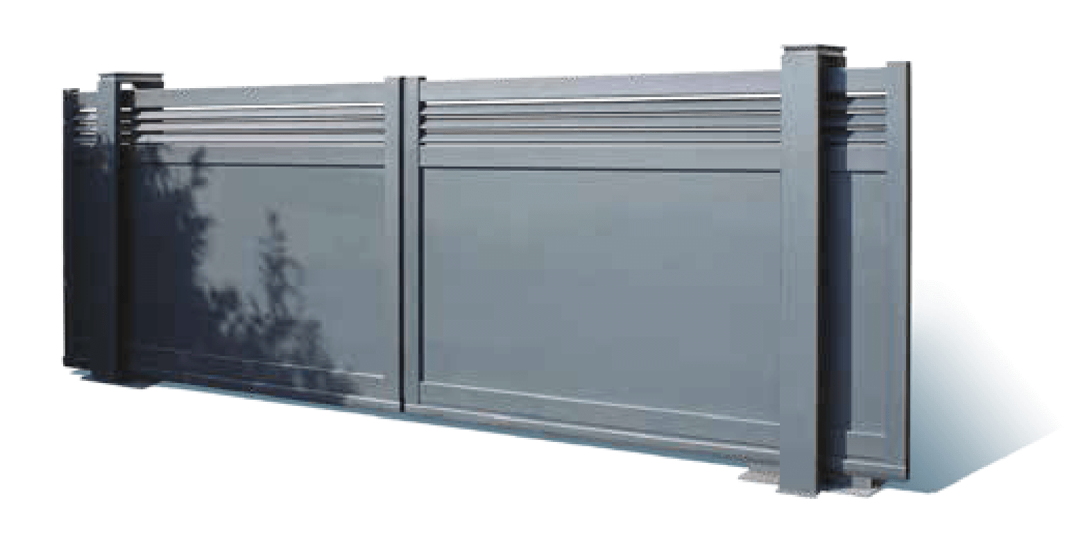 Le portail motorisé Twinslide Alumiunium est un concentré de technologie, à prix accessible et simple d’installation grâce à son gabarit de pose. Sans rail au sol, le système d’ouverture centrale s’intègre plus facilement à tous type de terrain grâce à un refoulement moins conséquent, sans compromis sur le design (le pilier intégrant toute la technologie).