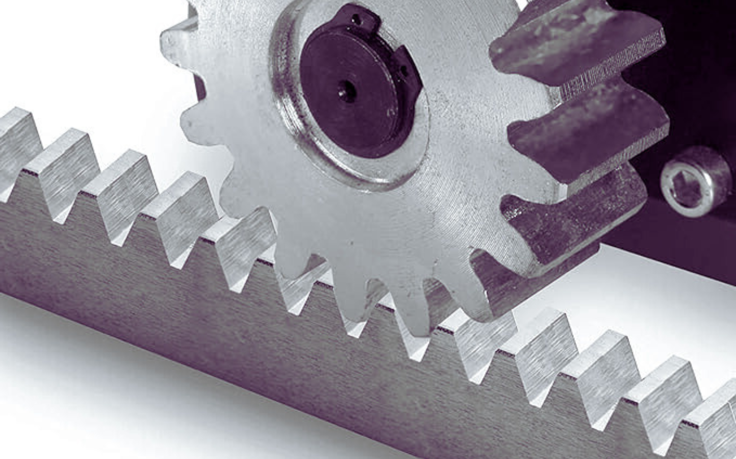 La crémaillère transforme le mouvement rotatif du moteur en déplacement linéaire du vantail.