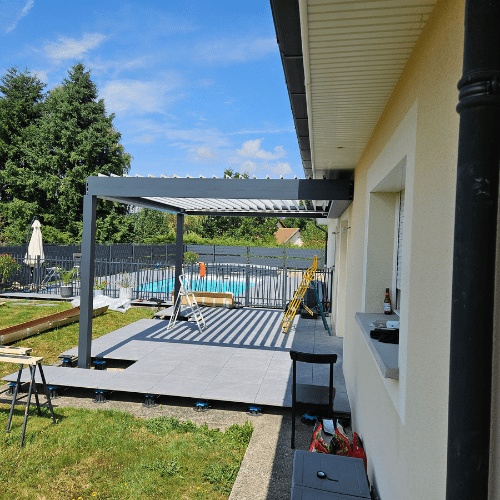 C’est exactement ce que vous offre notre pergola bioclimatique adossée en aluminium : une extension à ciel ouvert, directement connectée à votre intérieur. Dès son installation, elle redessine l’espace de vie. On y installe une grande table pour les repas d’été, un salon extérieur pour les fins de journée, ou même un coin lecture à l’abri des rayons du soleil. Elle épouse la façade de votre maison avec élégance, comme si elle avait toujours été là. En quelques instants, votre terrasse devient un lieu de vie à part entière, entre maison et jardin.