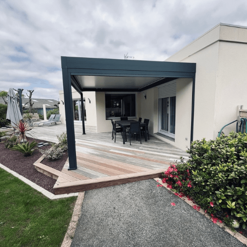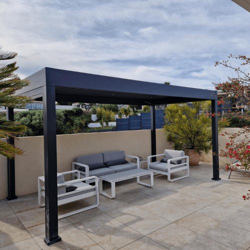 Nos modèles de pergolas sont équipés de lames orientables motorisées. Le toit de votre pergola peut s’ouvrir ou se fermer pour réguler l’apport de lumière et d’air, offrant ainsi une maîtrise totale de votre espace extérieur.