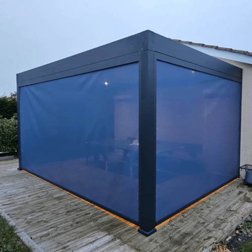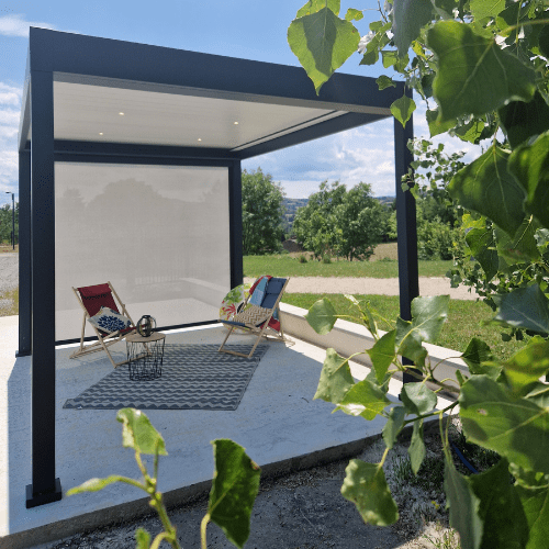 Si vous avez beaucoup de vis-à-vis, que vous souhaitez protéger votre intimité, vous pouvez ajouter des stores sur les côtés de votre pergola bioclimatique. Les stores permettent à la fois de créer un espace plus intimiste, mais aussi de vous protéger du soleil, du vent et des insectes.