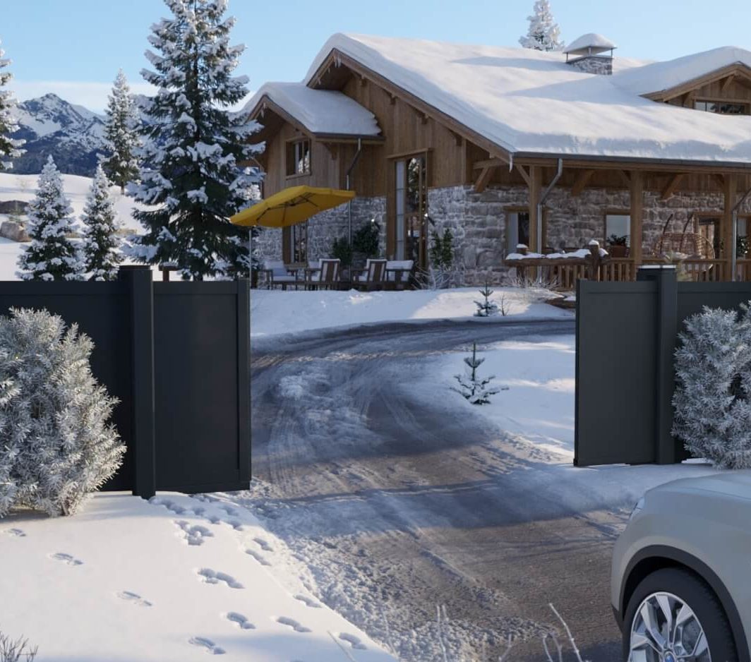 portail aluminium dans la neige