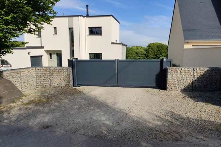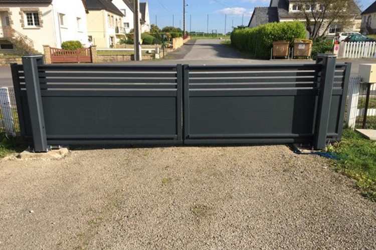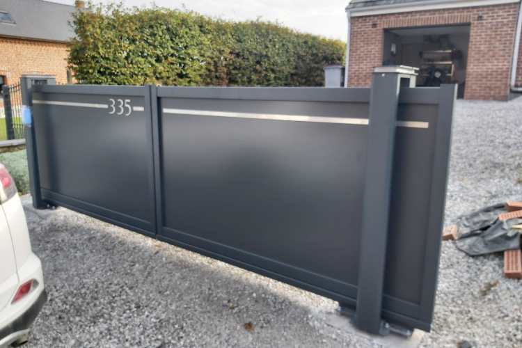 Nous avons choisi Portaleco, modèle Twinslide decoline RAL 7016, de 4 m de large par 1,70 m de hauteur. L’ouverture à 2 vantaux est la solution la plus adaptée chez nous car nous n’avons pas assez de dégagement pour le refoulement d’un seul vantail. La solution autoportante, sans rail au sol était idéal pour nous, pas de longrine à couler. Le montage est hyper simple grâce au gabarit, pas d’erreur possible. Portail robuste et esthétique. Nous recommandons !