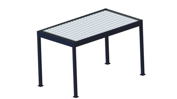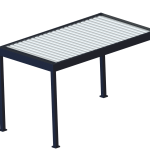 Pergola bioclimatique en aluminium, finition texturée givrée pour la structure et finition mate pour les lames.