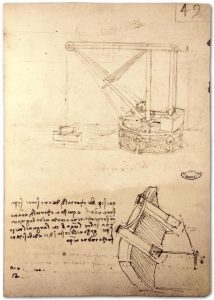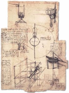 C’est au tour du Grand génie universel Leonard de Vinci d’apporter sa pierre à l’édifice. Il inventa le tout premier système de portes automatisées, à l’aide de contrepoids.